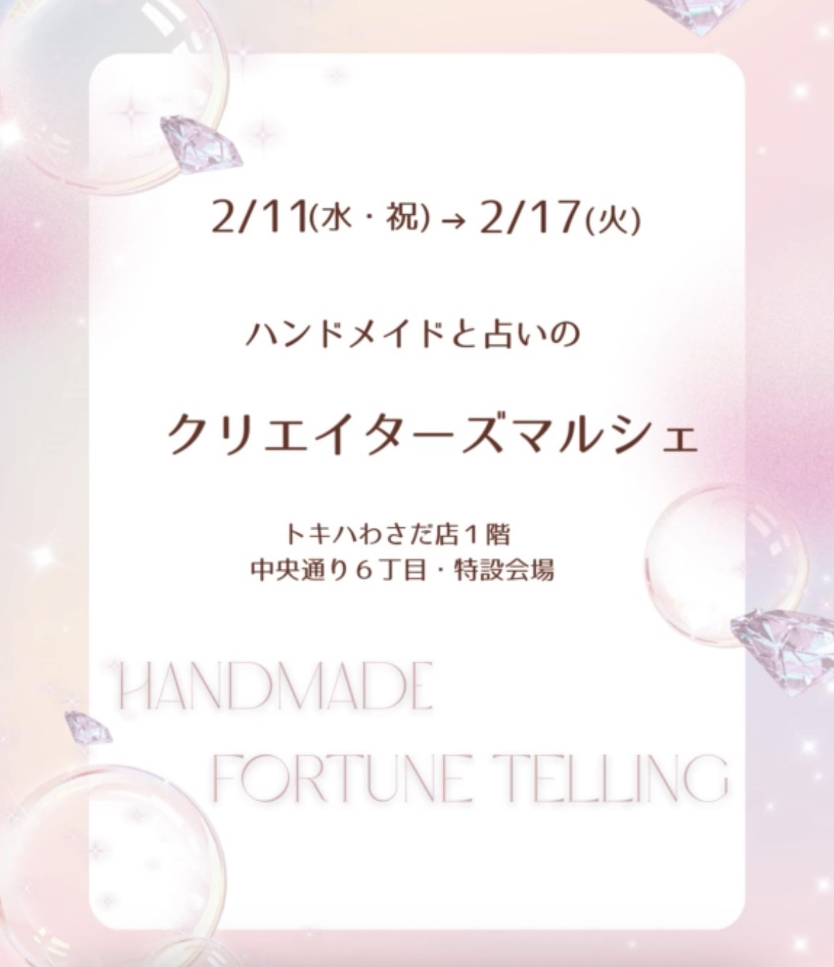 「ハンドメイドと占いのクリエイターズマルシェ」に出店します。
